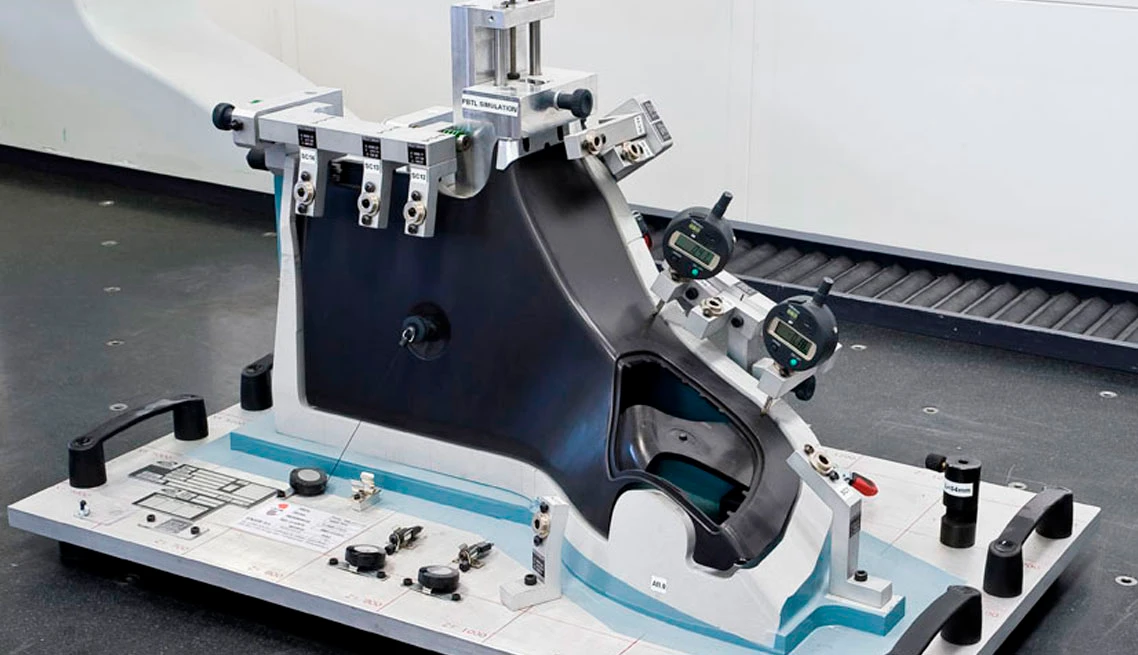 Medio de control utilizado en la industria para la sujeción de piezas durante el proceso de inspección mediante Máquinas de Medición por Coordenadas (CMM). Su diseño debe asegurar la repetibilidad en el proceso de medición y un adecuado acceso para el palpador en las zonas donde se requiere medir.